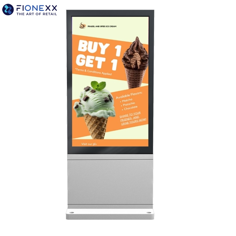 Que ce soit dans le cadre d'un écran de rue ou comme un écran individuel unique, la solution offre un large éventail d'applications possibles.La souplesse de l'utilisation du portrait ou du paysage et la large plage d'affichage en font le parfait accompagnement de nos écrans numériques extérieurs sans ventilateur.