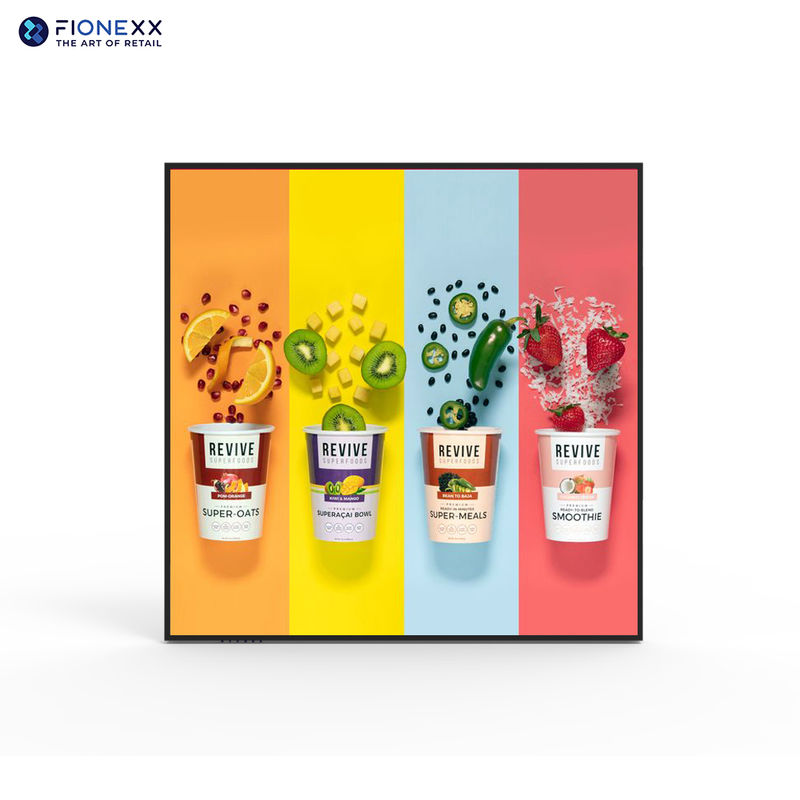 Doté d'un profil ultra-mince et d'une lunette, l'écran carré est parfait pour une gamme d'emplacements de vente au détail pour s'adapter à des constructions sur mesure et à des conceptions uniques.